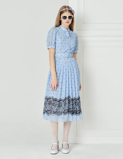 BORA AKSU Petal Trim Lace Pleated Shirt Dress