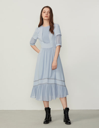 BORA AKSU Crew Neck Patch Pocket Thin Belted Dress