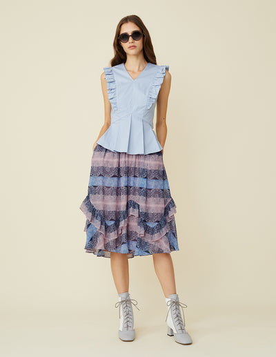 BORA AKSU Denim Waist Splicing Tartan Pattern Tweed Mini Skirt