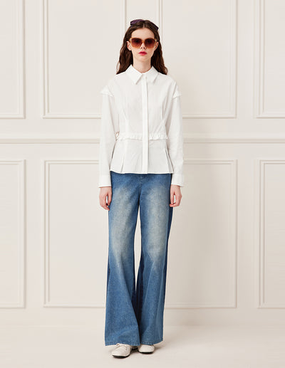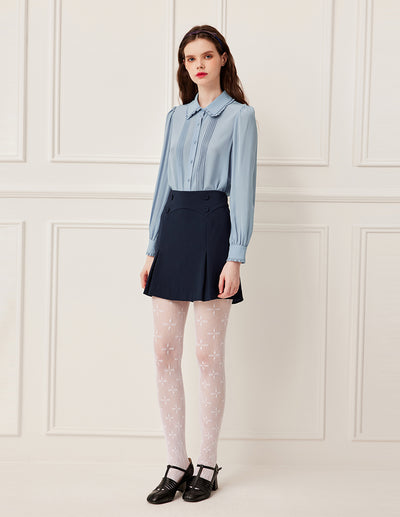BORA AKSU Mandarin Collar Black Silk Blouse with Ruffle, Pleats & Tie Ribbon