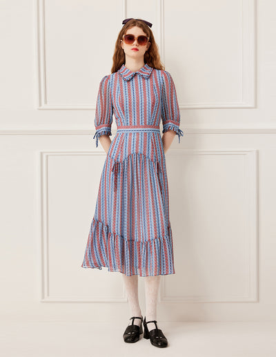 BORA AKSU Collared Bow Bubble Sleeve Pleated Midi Dress