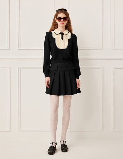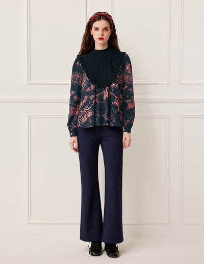 BORA AKSU Ruffled Trim Knit Top Patchwork Print Sash Tie Knitted Pullover