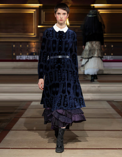 BORA AKSU Jacquard Print Puff Long Sleeve Ruffled-trimmed Velvet Shirt Dress
