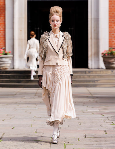 BORA AKSU Notched Collar Double-Breasted Beige Jacquard Coat