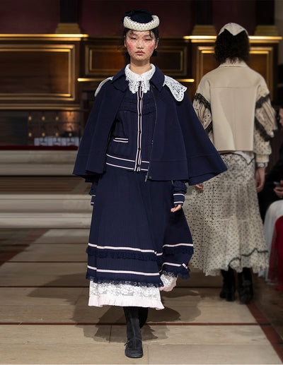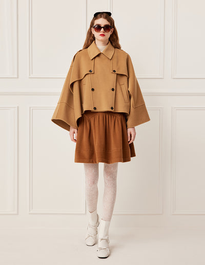 BORA AKSU Lapel Collar Wool Silk Double-Faced Cape Coat