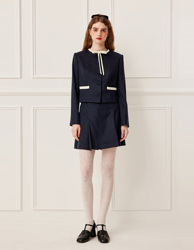 BORA AKSU Lapel White-Trimmed Long-Sleeve Cropped Blazer