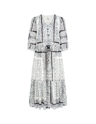 BORA AKSU Stand Collar Long Sleeve Geometric Print Midi Dress