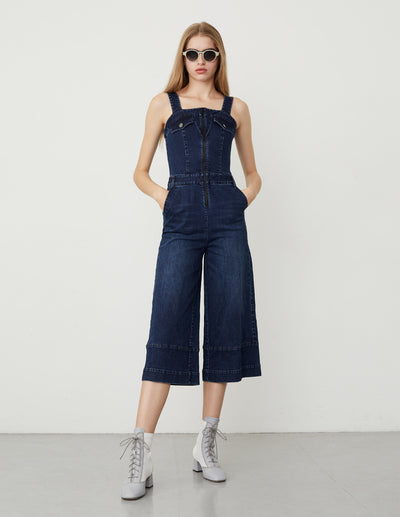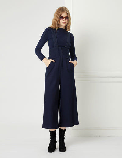 BORA AKSU Acetate Oblique Strap Strapless Navy Blue Jumpsuit