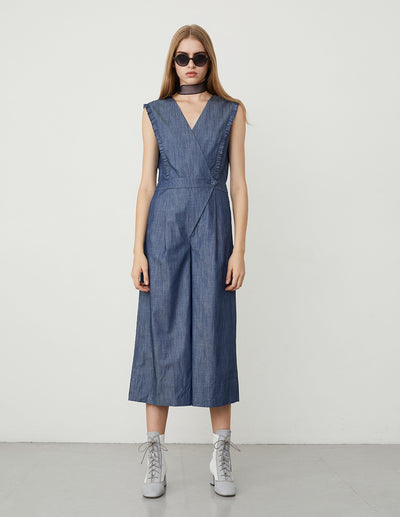 BORA AKSU V-Neck Sleeveless Pleated Jumpsuit