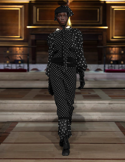 BORA AKSU Round Neck Tie Black & White Check Jacquard Full Wool Cardigan