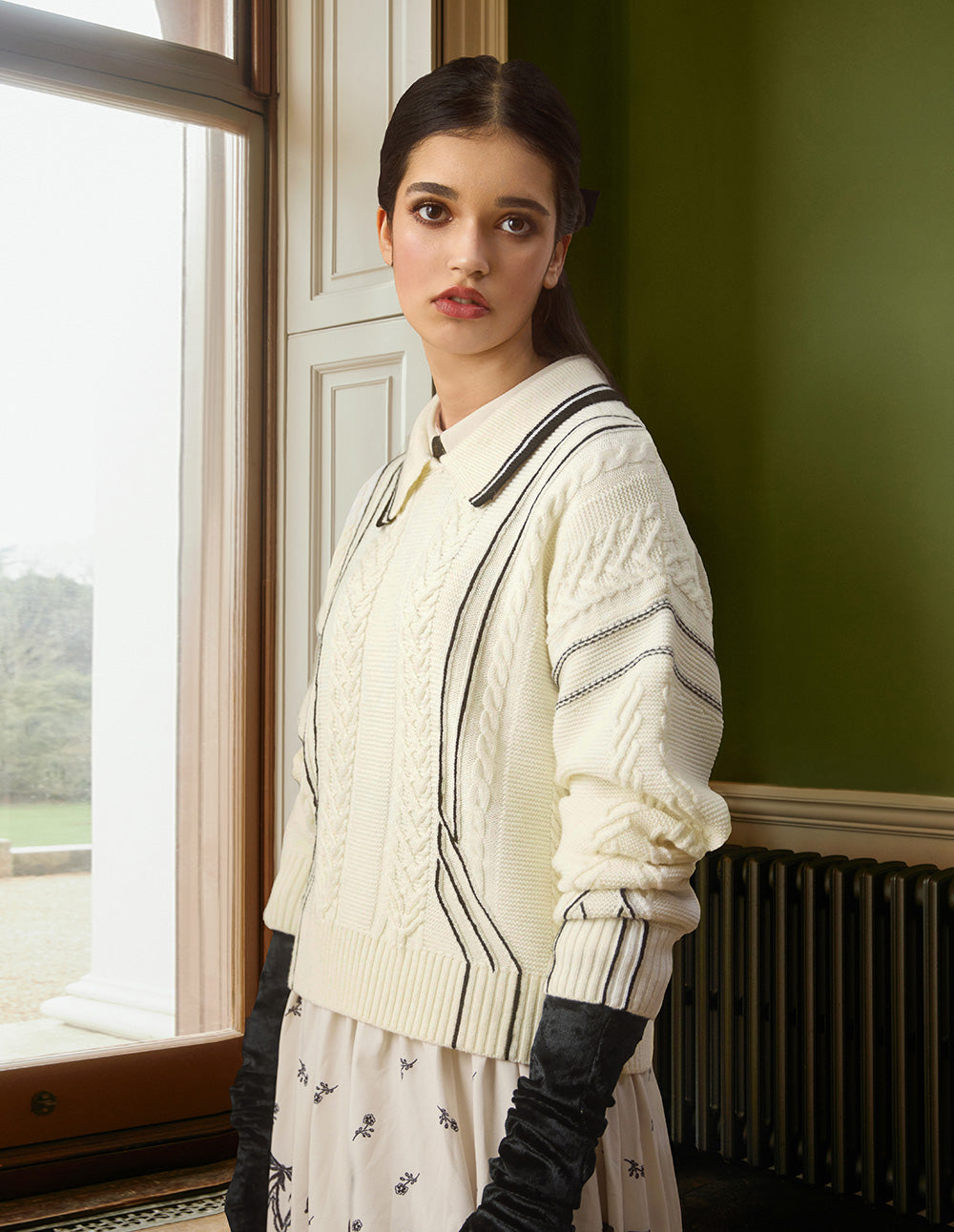 BORA AKSU Full Wool Cable Knit Lapel Long Sleeve Pullover