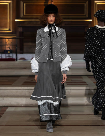 BORA AKSU Round Neck Long Sleeve Polka Dot Wool Knit Cardigan with 4 Pockets