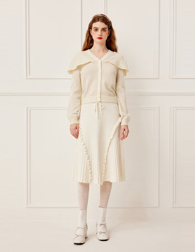 BORA AKSU Round Neck Long Sleeve Wool Knit Cardigan with Ruffle Trim