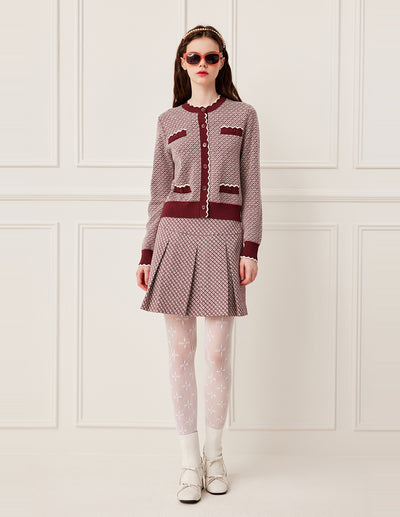 BORA AKSU Round Neck Ruffled-Trim Geometric Print Full Wool Knit Cardigan