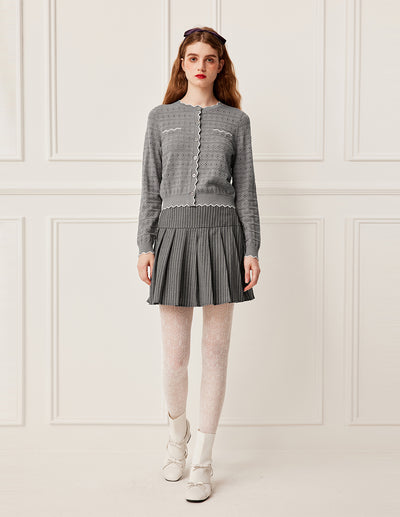 BORA AKSU Round Neck Long Sleeve Openwork White Stripes Knit Cardigan