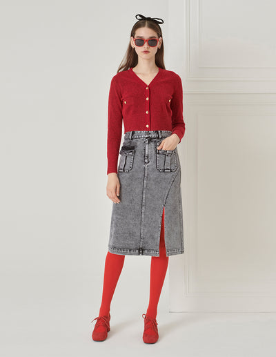 BORA AKSU V-Neck Horsehair Linen Blend Knit Cardigan