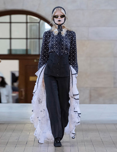 BORA AKSU Bubble Sleeve Patchwork Two-Piece Printed Blouse