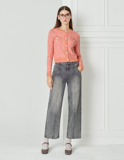 BORA AKSU Retro Imitation Tweed Stripe Wool Knit Cardigan