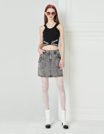 BORA AKSU Round-Neck Lace-Striped Patchwork Cropped Knit Cardigan