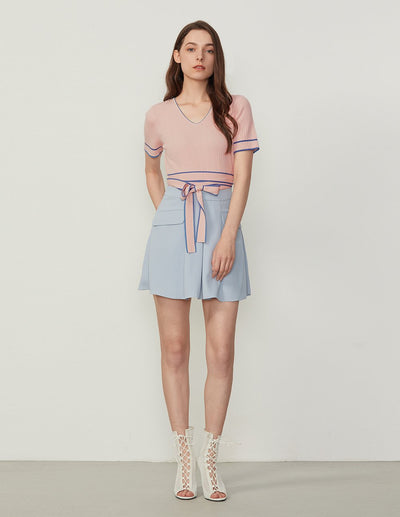BORA AKSU Sweet Red And White Colour-Block Knitted Fake Two-Piece Top