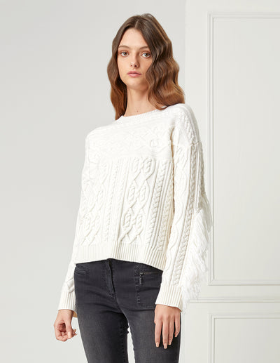 BORA AKSU Shoulder Ruffle V-Neck Knitted Cardigan