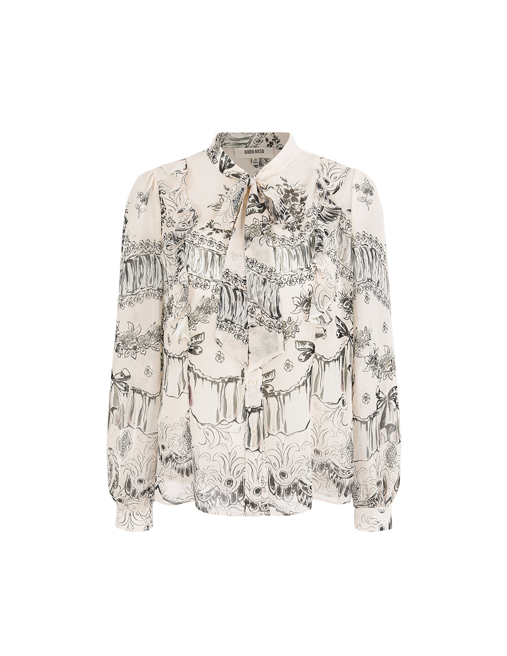 BORA AKSU Ruffle-Trimmed & Bow-Knot Ink-Print Long Sleeve Blouse