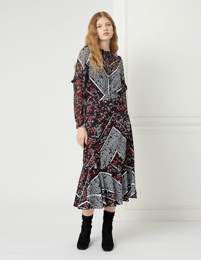 BORA AKSU DAFFODILL MESH RUFFLED LACE MID SLEEVE LONG DRESS