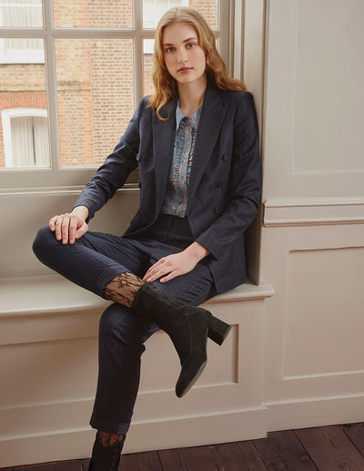 BORA AKSU NAVY GRID SEMI-FLARE FIT SLACKS