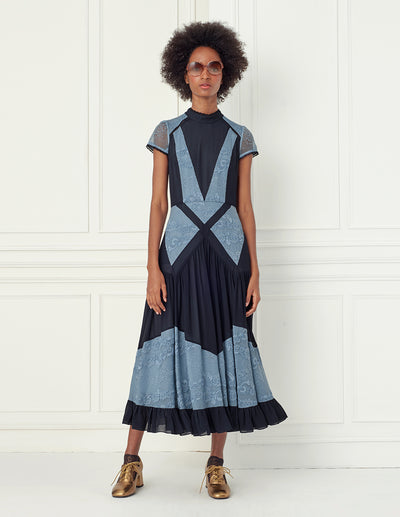 BORA AKSU Lace-Trimmed Floral Lace Square Neck Midi Dress