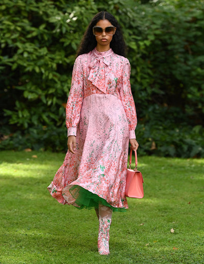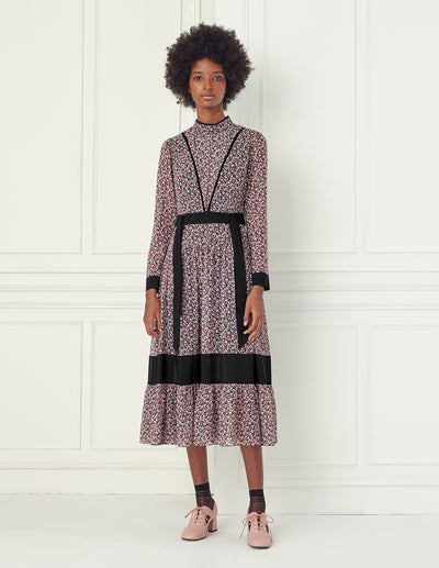 BORA AKSU Lace-Trimmed Floral Lace Square Neck Midi Dress