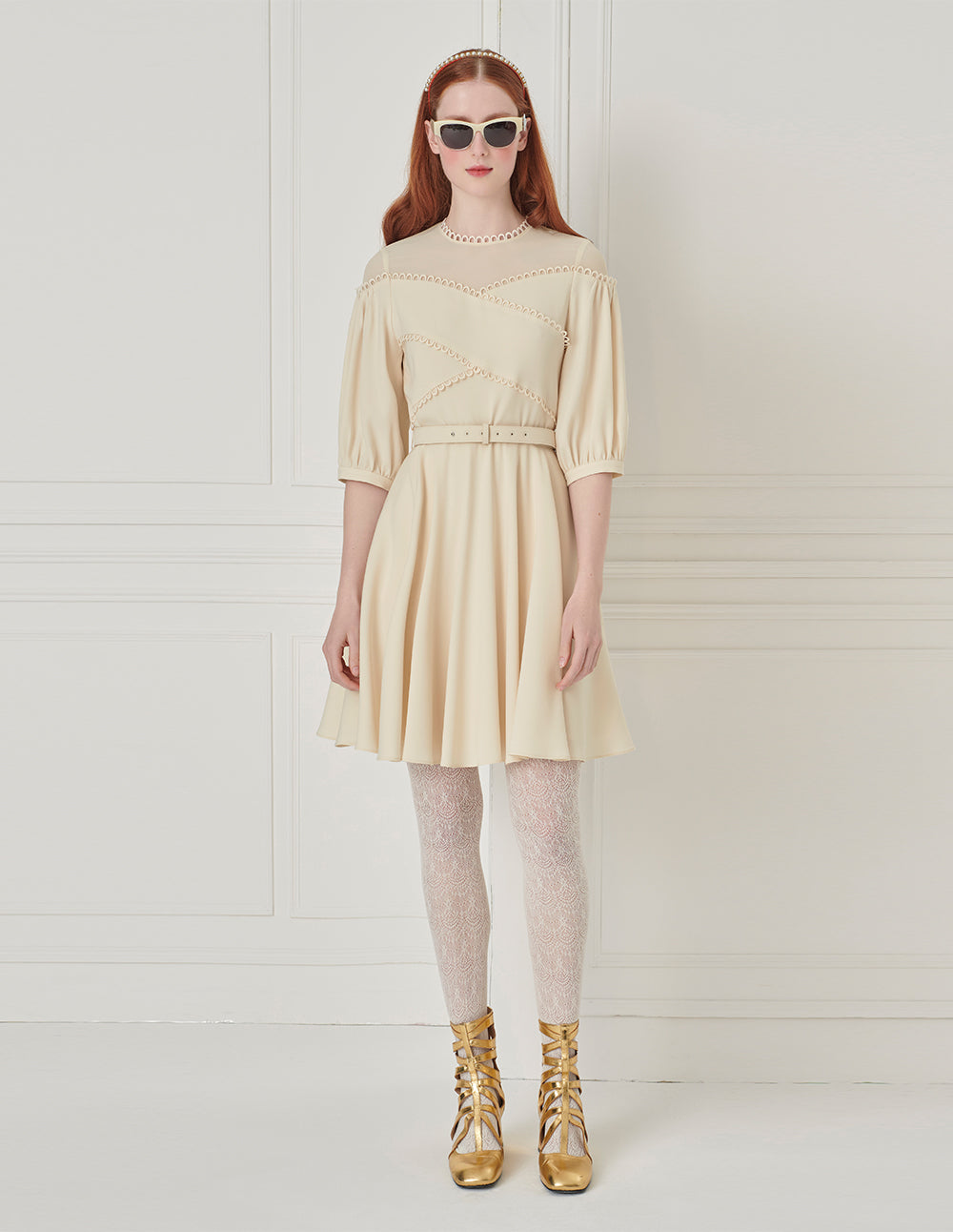 BORA AKSU Hepburn Style Acetate Patchwork Lace Trim Umbrella Dress