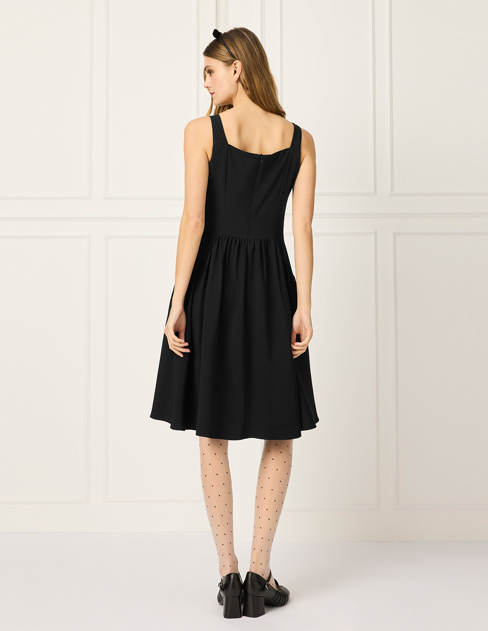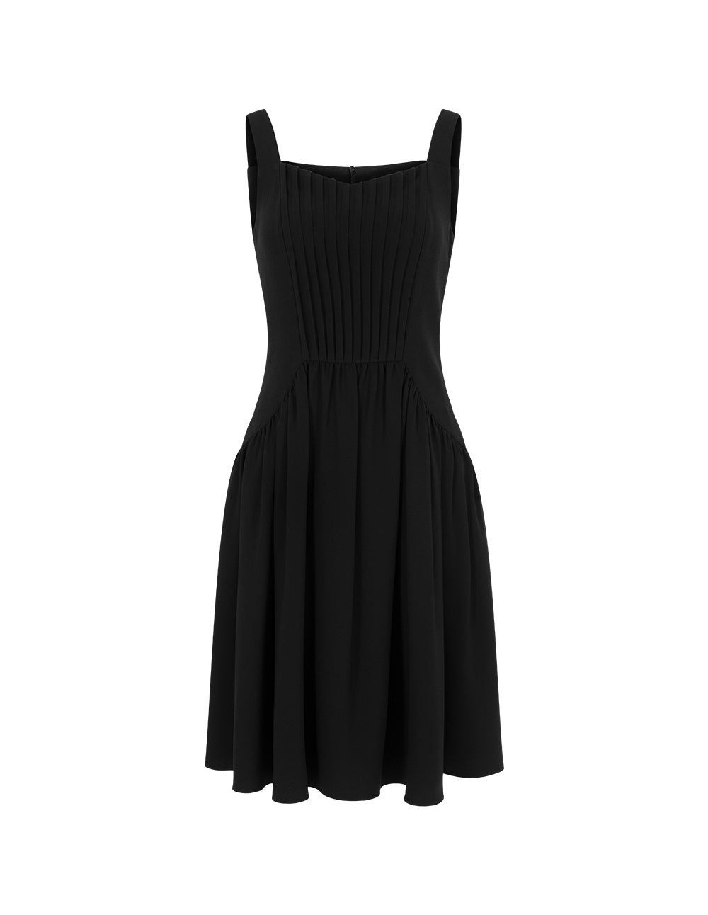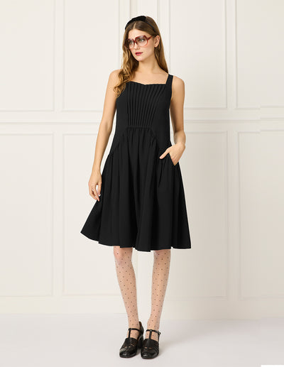 BORA AKSU Diamond-Neck Sleeveless Pin Tuck A-line Midi Dress