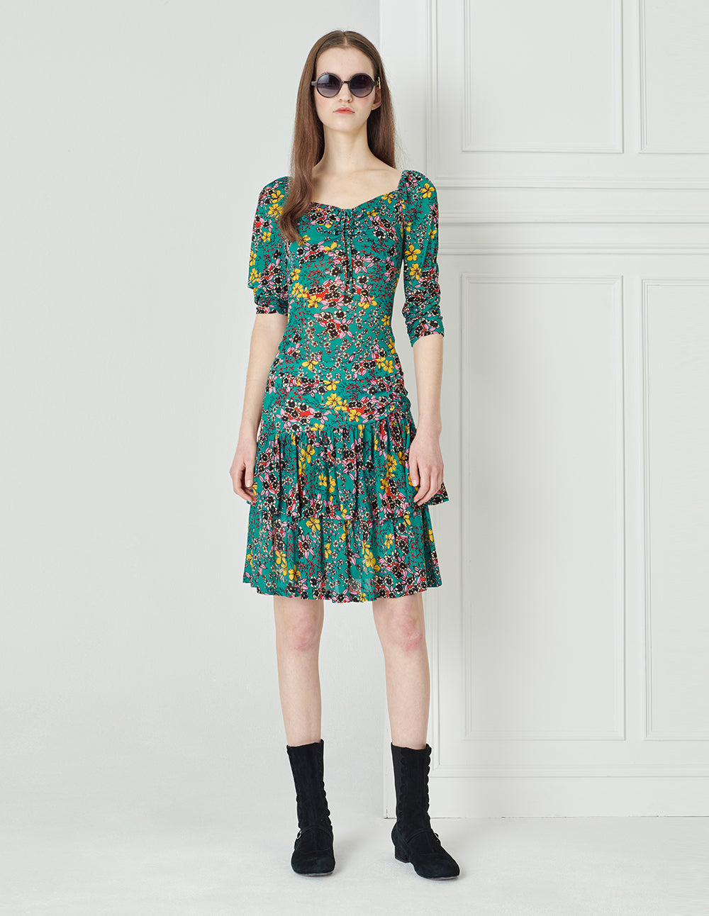 The top is made of elastic and a soft knitted printed fabric, which makes it comfortable to wear. The colourful prints are spread all over the body, and the elegant nature has a vivid charm. Wear yours with the matching skirt for a romantic and elegant look.