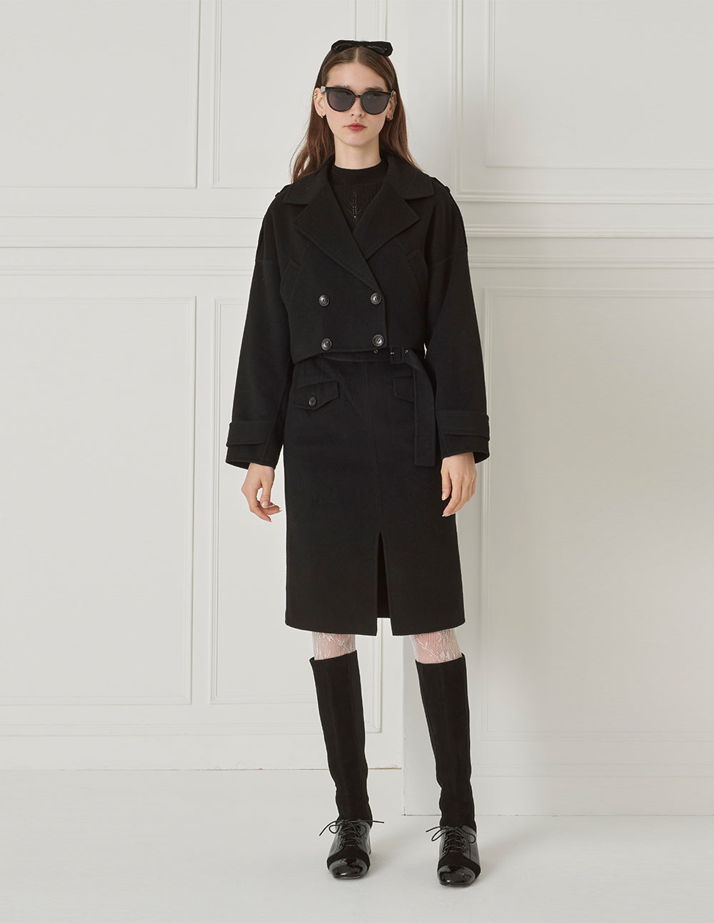 The jacket is made from soft, fine double-faced wool fabric. Using clean lines and exaggerated proportions, it creates a deconstructed silhouette, while the smooth, wide sleeves and cropped cut add an edgy coolness. It effortlessly elevates everyday autumn and winter looks.