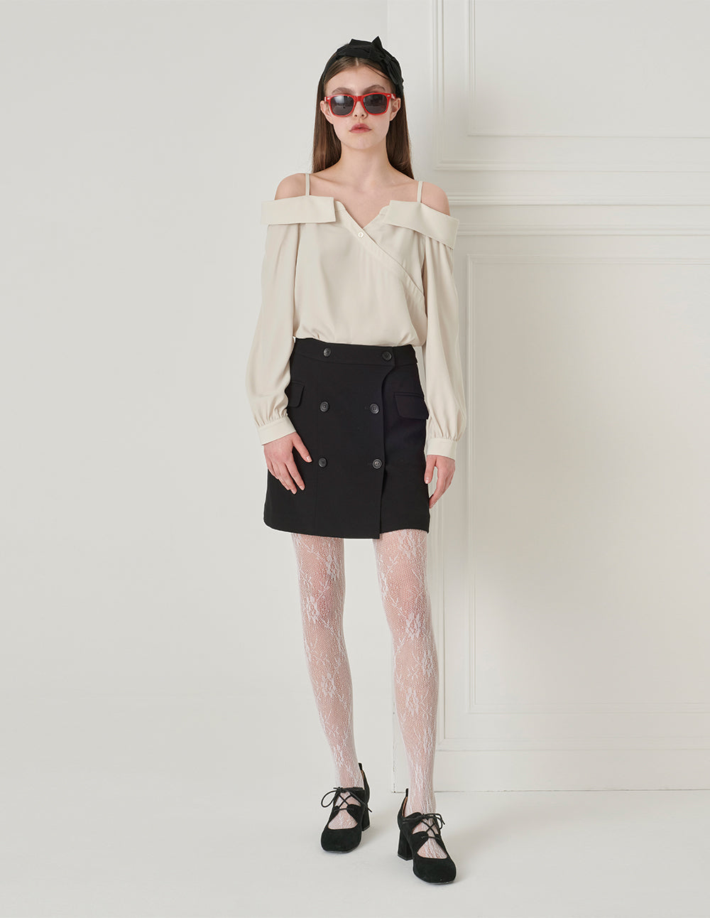 BORA AKSU Elegant All-Match Triple-Acetate Lapped Double-Breasted Skirt