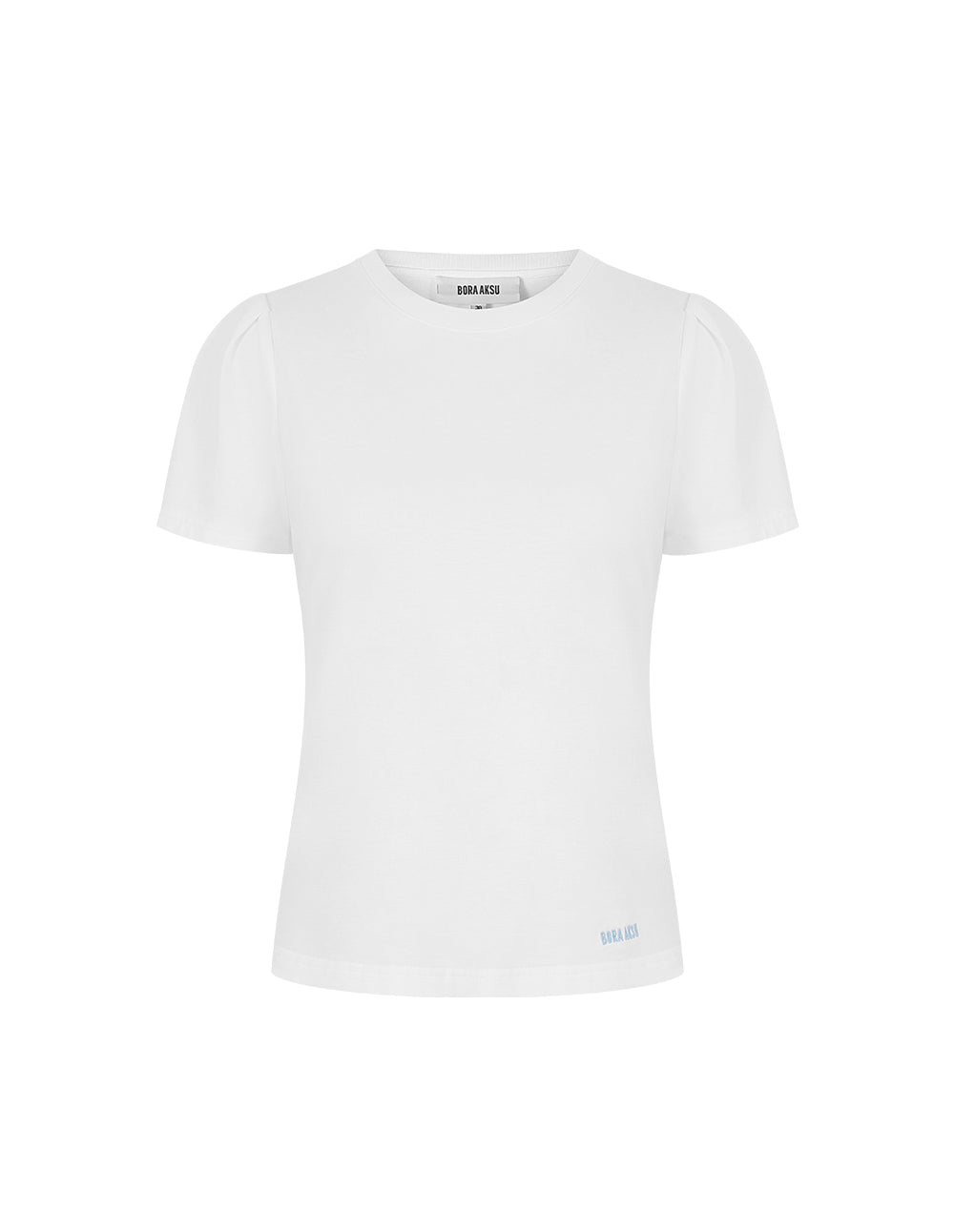 BORA AKSU Round-Neck Bubble Short-Sleeve Cotton White T-Shirt