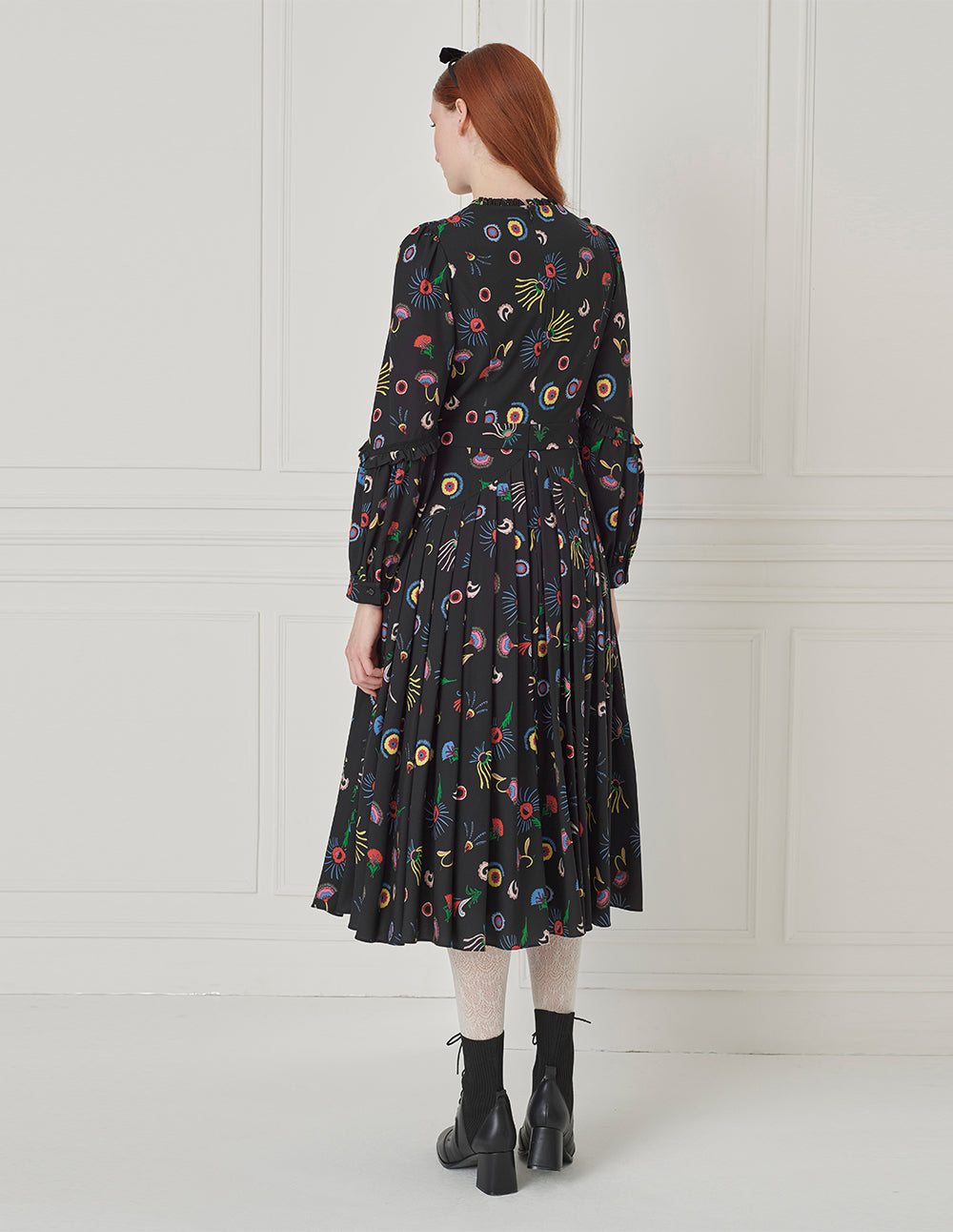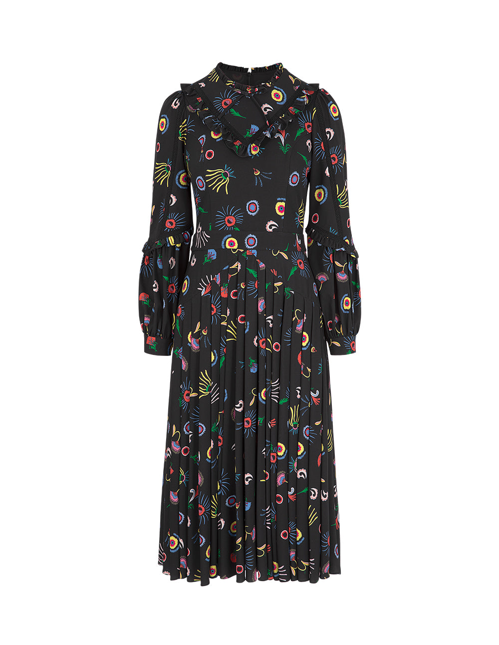 BORA AKSU Ruffle Long-Sleeve Printed Pleated Midi Dress