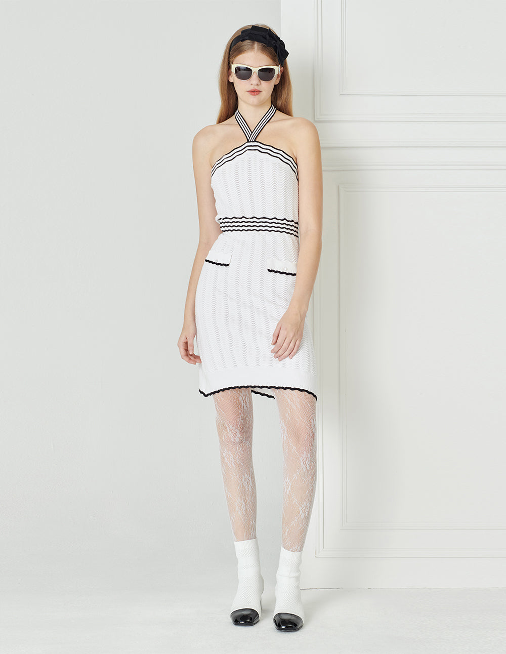 BORA AKSU Halter Neck Ripple Textured-Knit Sleeveless Dress