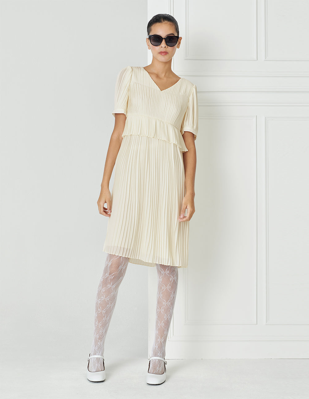 BORA AKSU French Temperament V-Neck Pleated Dress