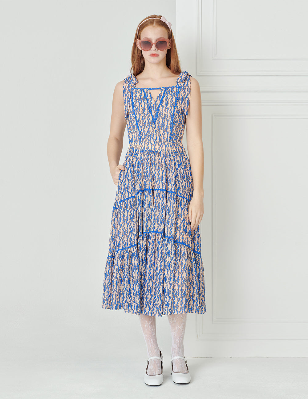 BORA AKSU Paisley Print Strappy Bow Lace Trim Dress