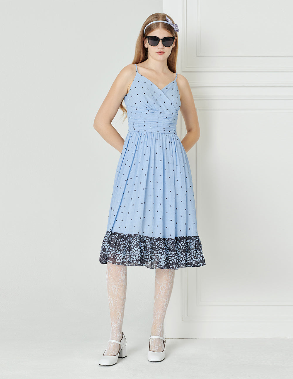 BORA AKSU Petal Trim Lace Pleated Shirt Dress