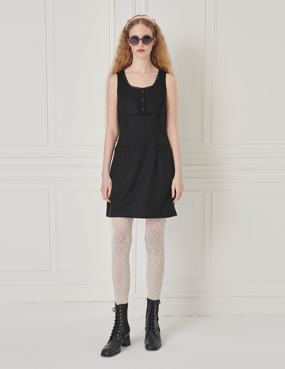 BORA AKSU Hepburn Style Acetate Patchwork Lace Trim Umbrella Dress