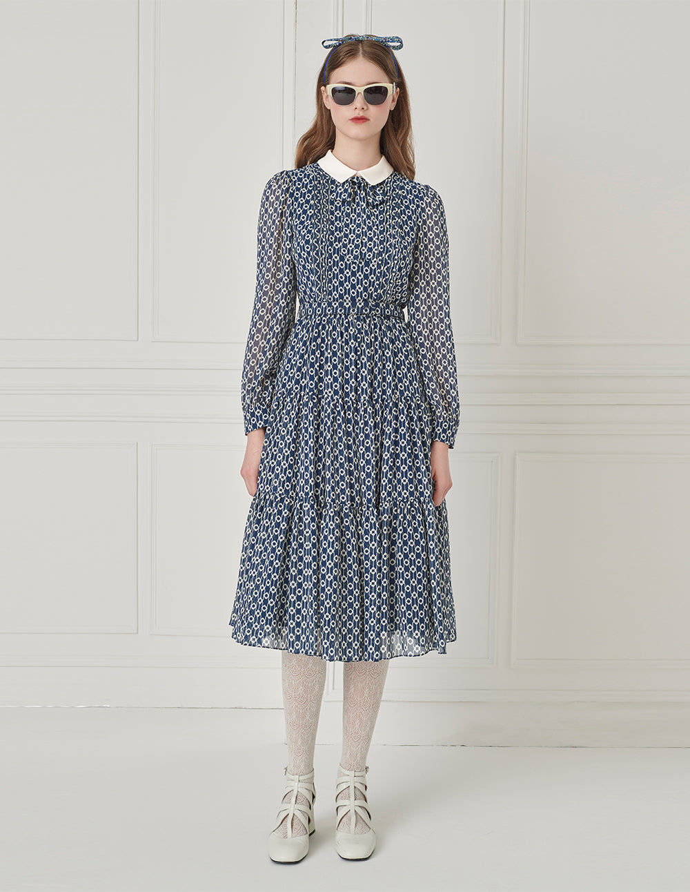 BORA AKSU Peter Pan Collar Printed Pleated Dress