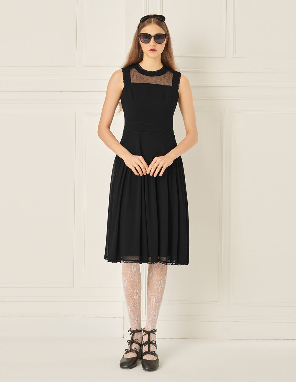 BORA AKSU Mesh Patchwork Lace Embellished Little Black Dress