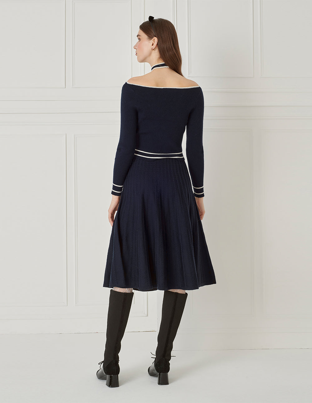 The pullover is made from wool fabric with a soft, comfortable texture. The cross-back halter detail adds a distinctive design touch. Combined with the double-shoulder cutout, it infuses a hint of sensuality into the piece, elevating autumn and winter travel style.