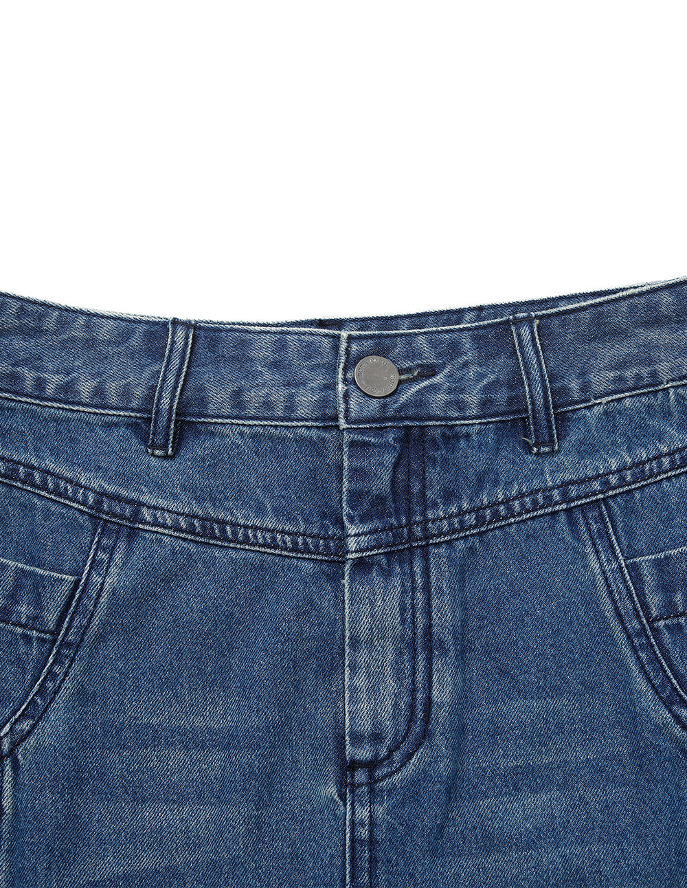 Clean lines define a fashion‑forward silhouette, with smooth tailoring that lends an upright posture. The knee‑hugging length captures modern proportion, subtly shaping the leg for an elegant, individual look. Deliberate thigh‑lightening adds a vintage‑washed charm, while softly curved patch pockets blend function with retro flair, enlivening the whole.
