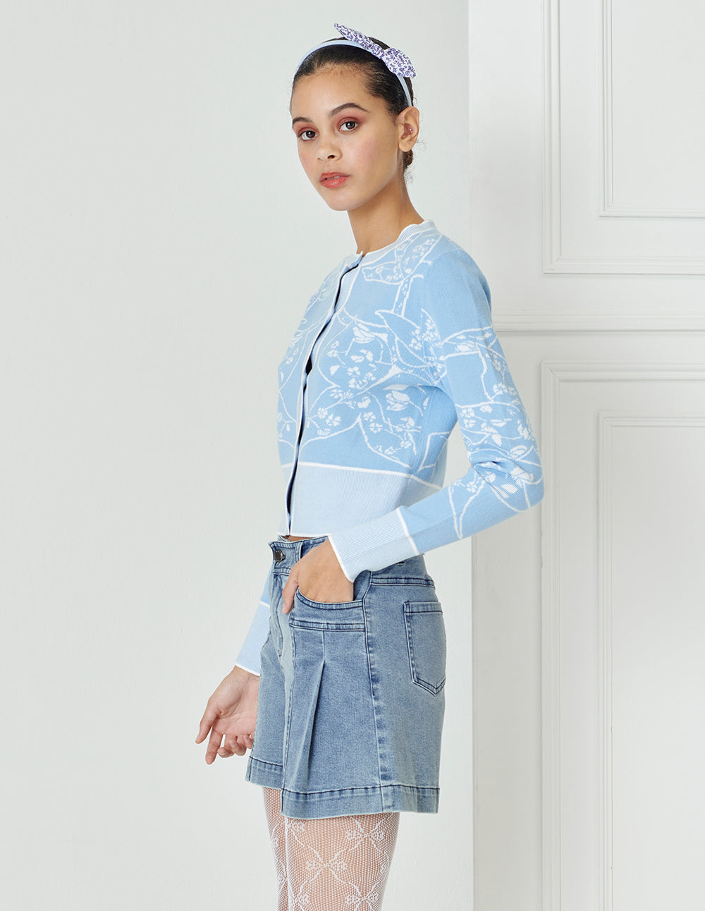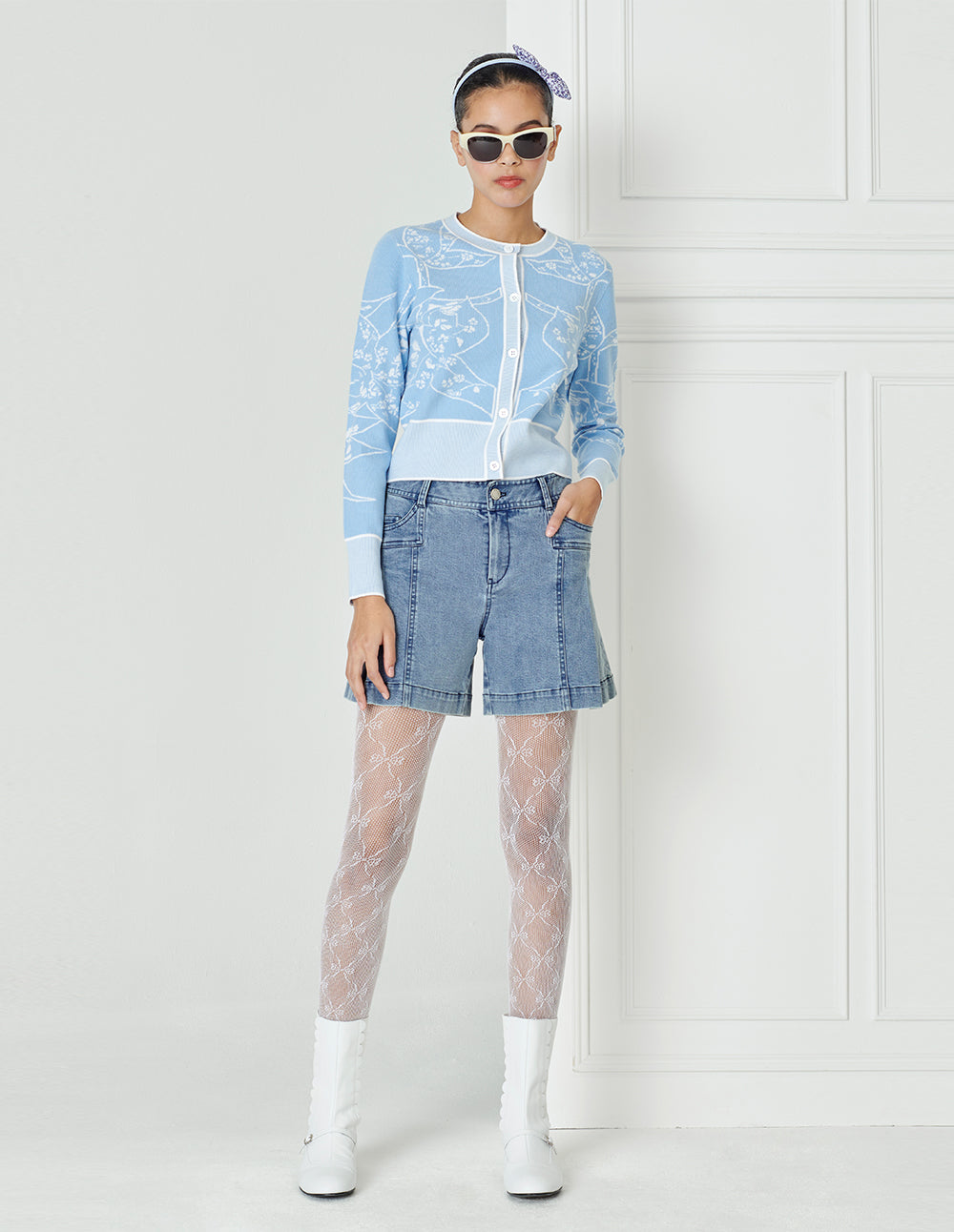 Denim shorts create a clean and simple shape with smooth tailoring, and the soft pleat design subtly interprets the brand DNA. Match it with the top of the same brand to create a simple, chic urban look.