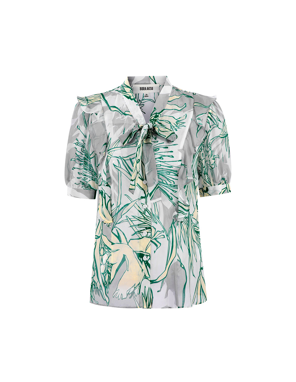 BORA AKSU Silk Bow Tie-Up Printed Shirt