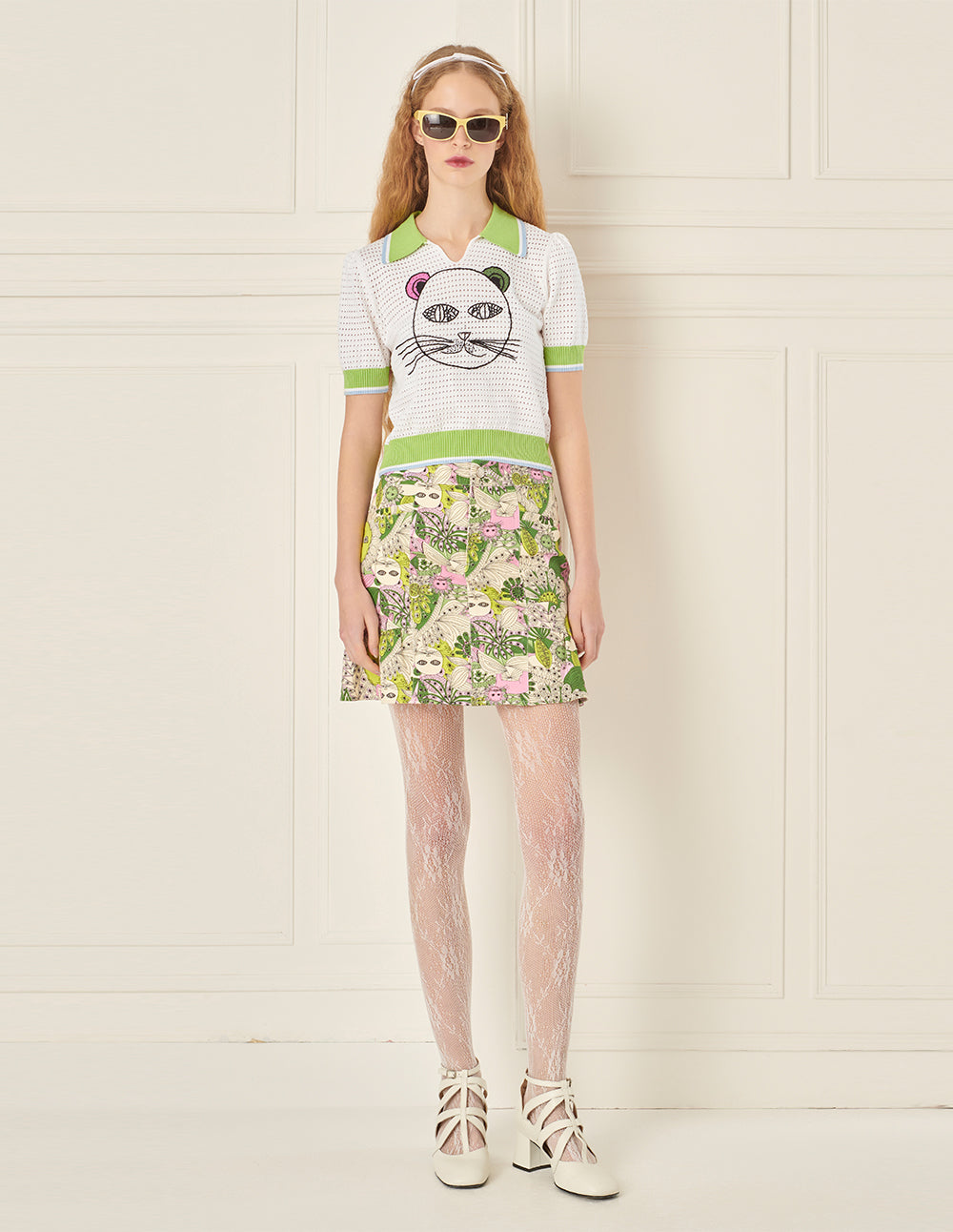 BORA AKSU Handhook Cat Pattern Hollow Textured Knitted T-shirt