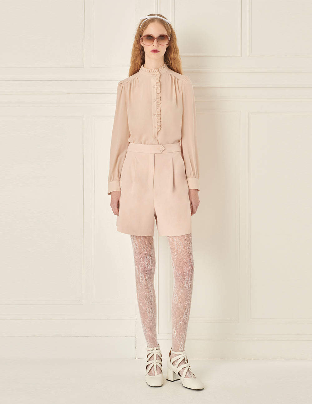 BORA AKSU Mulberry Silk Puff-Sleeved Elegant Ruffles Stand-Collar Blouse